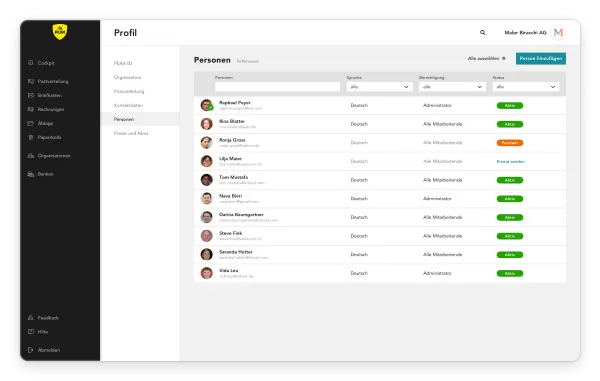 Volle Kontrolle über Personen, Berechtigungen und Verteilergruppen