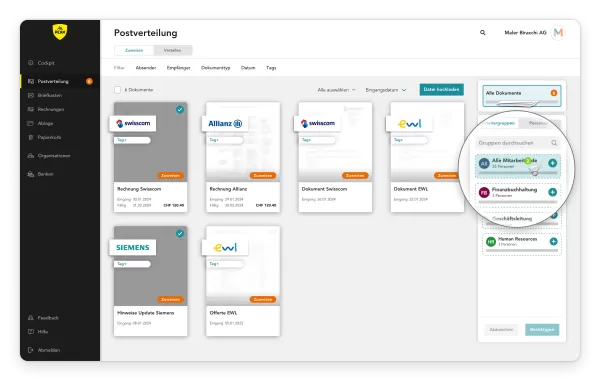 Zusätzlich ermöglicht die Anbindung an ein DMS die Automatisierung von Workflows rund um die Dokumentenverarbeitung. Beispielsweise können Rechnungen direkt nach dem Eingang automatisch den zuständigen Mitarbeitenden zur weiteren Bearbeitung zugewiesen werden. Dies trägt zu einer schnelleren Bearbeitungszeit bei und reduziert das Risiko von Verzögerungen oder Fehlern in der Dokumentenverarbeitung.